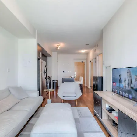 1Br Plus Den Condo With Balcony In Heart Of Toronto ferielejlighed ligger i centrum af Toronto, inden for kort afstand til Ripley's Aquarium of Canada. Indkvarteringen er og byder på et udstyret køkken med alle nødvendige redskaber til at tilberede måltider.
