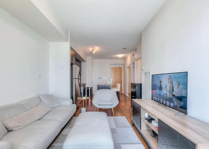 To enjoy your vacation in Toronto, stay at the spacious 64 m² 1Br Plus Den Condo With Balcony In Heart Of Toronto, which is merely 650 metres from the over 553-metre CN Tower and merely 1.2 km from the urban plaza "Nathan Phillips Square".
